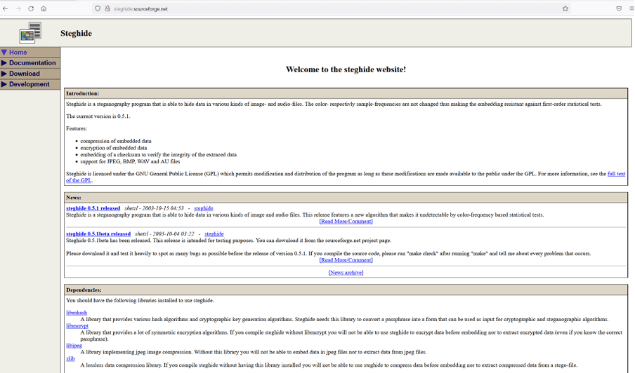 To further analyze the image file's contents, we researched over the internet for some useful utilities and found a tool named steerhide. The information given on the official website can be seen below.