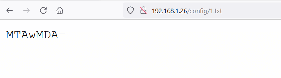 In the config directory, the file named '1.txt' had a string that seemed to be base64 encoded. Let us decode the string to find out the clear text information.