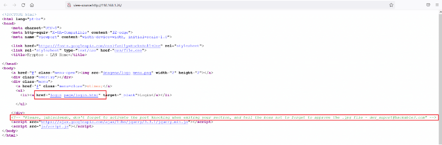 In the HTML source, we found a login page on the target application named 'login.html.' There was a hint mentioned on the website, which can be seen below.