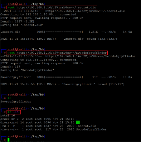 - << wget http://192.168.1.16/c2VjcmV0cw==/Swordofgryffindor >>