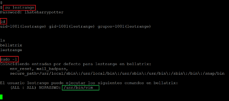 As this was an unstable shell, we directly logged in to the target system with user lestrange. The login was successful, and we are now logged into the target machine as user lestrange. We checked the sudo permissions for user lestrange using the 'sudo -l' command. We identified that the user could run the vim command as root.