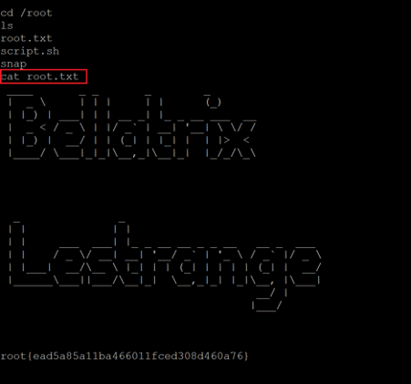 The root flag was easily identified in the root directory. The flag can be seen reading in the above screenshot.