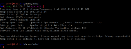 Command used: << nmap 192.168.1.16 -p- -sV >>