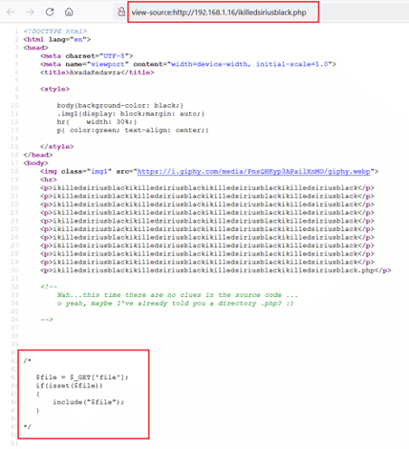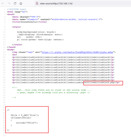 We again got a page with the same text and some images. We checked the HTML content of the page where we found the PHP code as a comment which can be seen below.