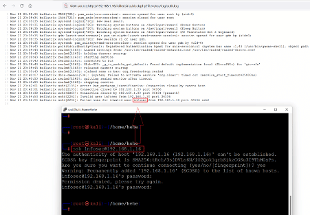 As can be seen above, we tried to log in as an infosec user. Since we did not know the password, we just entered any random password. After that, we went back to the browser and clicked on the refresh button to update the page. We found the log entry of the infosec user. Let us change the username to an executable command to analyze the server response on the target machine.