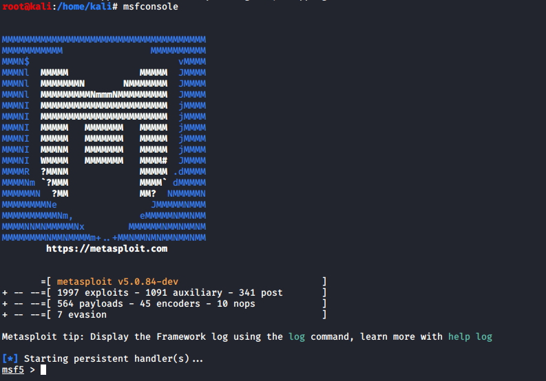 After complete installation, we are going back to the Kali machine and start the Meterpreter session.
