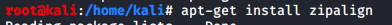 Zipalign is not preinstalled in Kali Linux, so you will have to install it first.