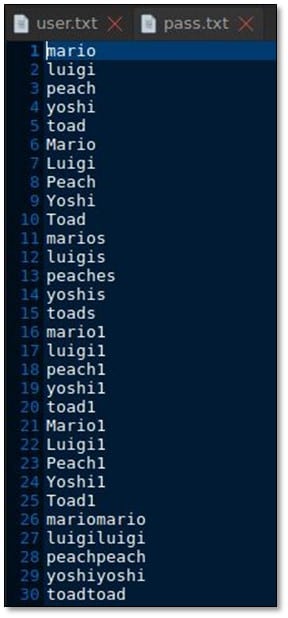 We created a username list from the whole Mario family: