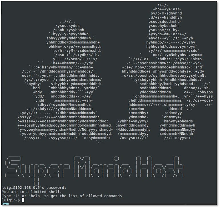Moreover, we found the correct pair of credential luigi:luigi1 and we logged in via SSH: