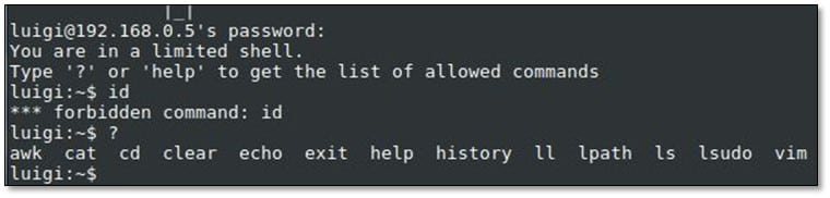 We tried to browse the system, and we found that it is a limited shell.