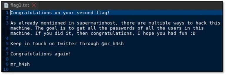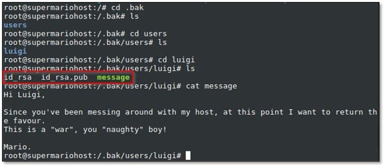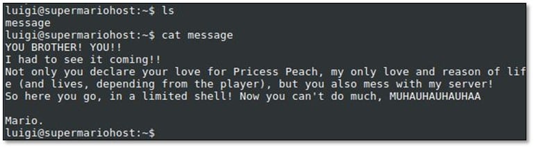 In the luigi user directory, we found the message, and we read it.