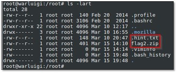 After browsing the current directory, we found two files .hint.txt and flag2.zip