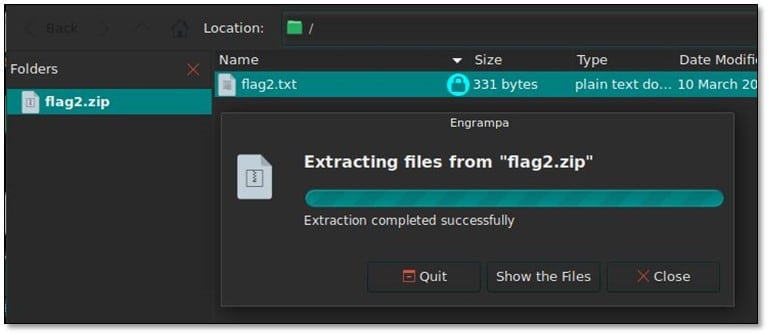 We opened the .hint.txt file and then again exported the flag2.zip file in our local system.