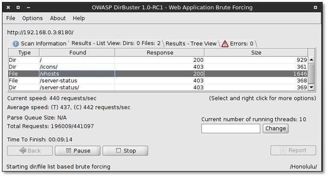 Fired directory buster for finding internal files.