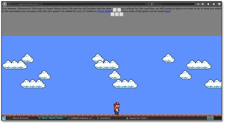 "It'sa meeeee, Maaaaario! Welcome to Super Mario Host! Me and my tall brother had the idea of making a tribute for this machine, we still trying to figure out what to do to keep you entertained! In the meantime you can play with this nice game I've added for you :D Credits to Mark Robbins, the source code of the game can be found here."