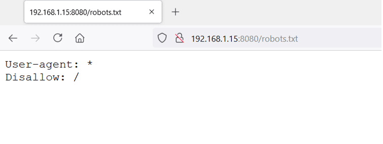 We could not get much information; we just got one file, 'robots.txt.' Let's open it in the browser, hoping for further clues.