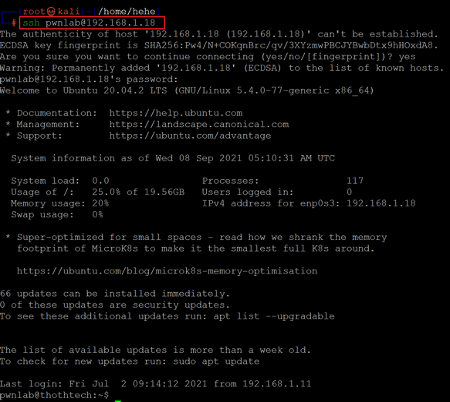 Command used: << ssh pwnlab@192.168.1.18 >>