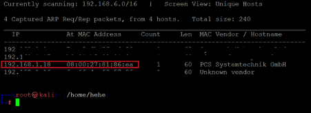Note: the target machine IP address may be different in your case, as the network DHCP is assigning it.