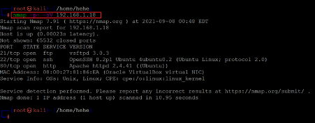 Command used: << nmap –p- -sV 192.168.1.18 >>