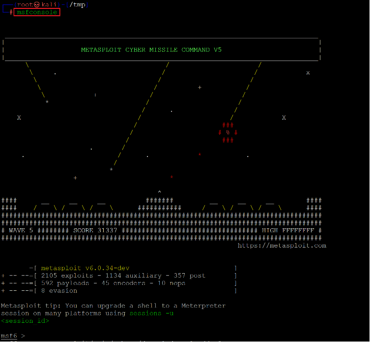 Command used : <<msfconsole>>