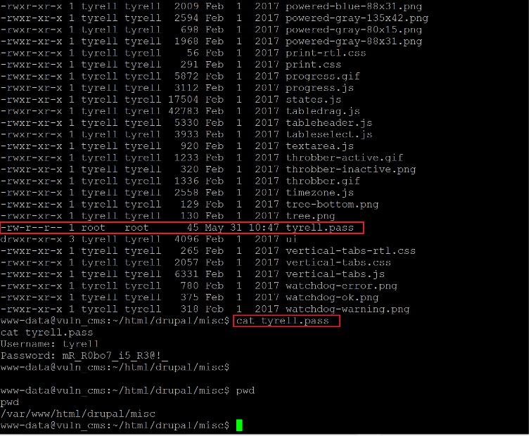 Command used: << cat tyrell.pass >>