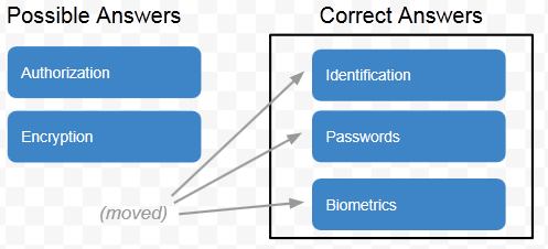 CISSP drag-and-drop questions require you to move one or more correct answers from a pool of possible answers into the "Correct Answers" area. For example: