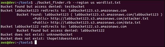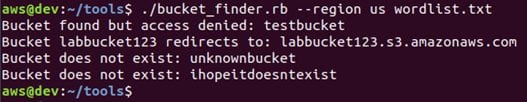 Now, let's run Bucket Finder by updating the wordlist with the new bucket name labbucket122.