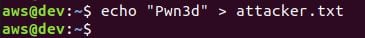 Now let's see if we can write attacker-controlled objects to the target bucket. First, let's create a new file named attacker.txt.
