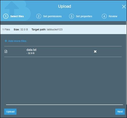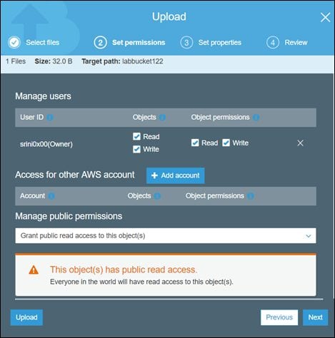 Now, let's create a new object in the labbucket122 bucket with the following settings.