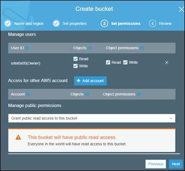 Finally click Next, review all the settings and click Create bucket.
