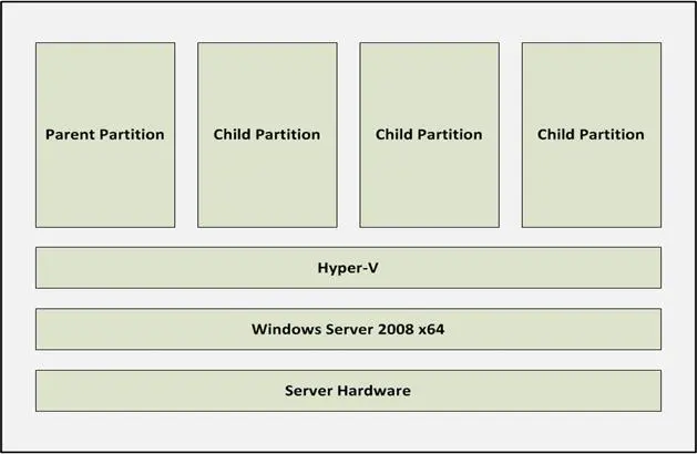 The Root (a.k.a. Parent) partition (RP) is a mandatory instance of Windows Server. The virtualization stack resides here, and administrators use it to create, initiate, stop, and manage VM instances. It also differs from child partitions in its ability to directly access hardware resources (Microsoft MSDN, 2011). Although the RP is important, no production systems run within it. This is the role of child partitions.