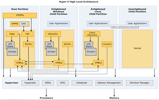 - Generally enables VM use of system resources without having to access the host operating system, while managing those resources as configured in the management operating system