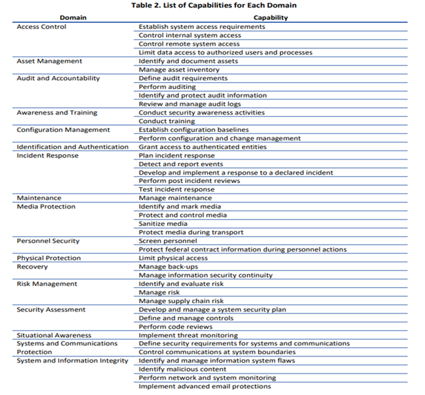 Table 2: Image is from Cybersecurity Maturity Model Certification (CMMC) DRAFT Version 0.7 December 6, 2019, page 6