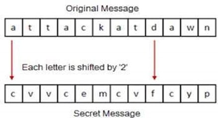 Thus, if the wraparound technique were needed to finish the encryption of the plain text message, with k=4, the letter "A" in the plaintext message would become the letter "D," and so on. The value of the "k" serves as the key in the Caesar Cipher since it specifies how the plaintext should be encrypted into the ciphertext.