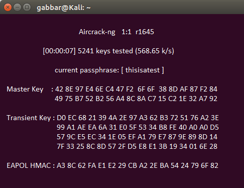 As of now, we have the encrypted password in our WPA2crack file; it is time to run that file against aircrack-ng tool using a password file of our choice. You can be only able to crack the password by giving good password file. Here, I have used big password list included with aircrack-ng on Kali Linux.