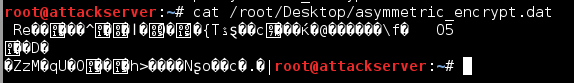 As seen, asymmetric_encrypt.dat is unreadable and must be decrypted only using the private key we previously generated.