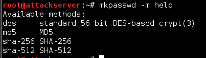 mkpasswd -m sha-256 -S infosecSalt -s <<< infosec