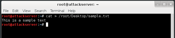 root@attackserver:~# cat > /root/Desktop/sample.txt
