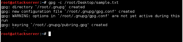 root@attackserver:~# gpg -c /root/Desktop/sample.txt