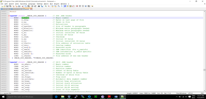 As we can see we have a list of structure that came under DOS header. We will not discuss everything as it is beyond our scope; we will discuss important ones that are required, such as magic and ifanew structure.
