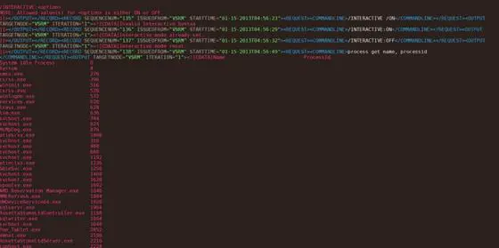 C:wmic /OUTPUT:C:TESTwmi.xml process get name