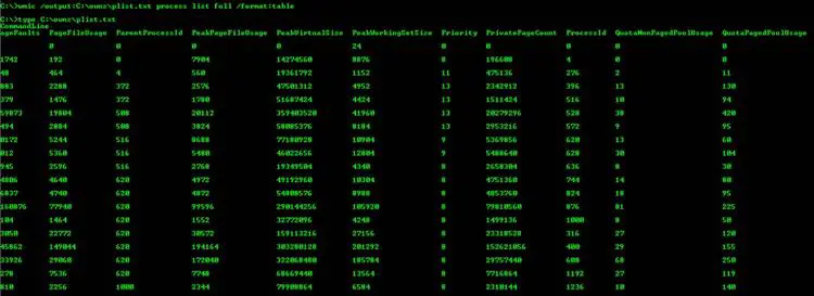 C:wmic /output:C:ownzplist.txt process list full /format:table