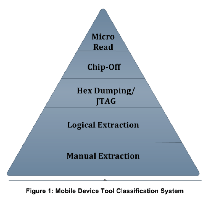Forensic software tools are continually developing new techniques for the extraction of data from several cellular devices. The two most common techniques are physical and logical extraction. Physical extraction is done through JTAG or cable connection, whereas logical extraction occurs via Bluetooth, infrared, or cable connection.
