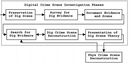 After this comes the Digital Crime Scene Investigation phase, this model consider each digital device as a separate crime scene, this phase ensure the collection of all electronic evidence, and just like the previous, this phase contains six 'identical' phases: