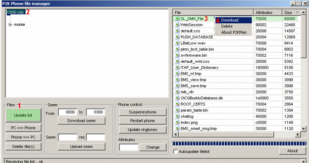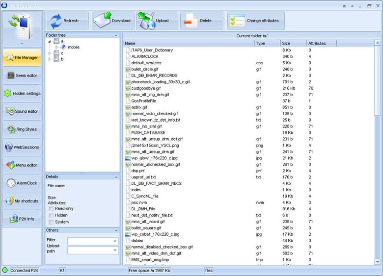 P2K Commander: The P2k Commander can browse a, b, c, and other folders using a data or fax connection mode. It supports a change of file attributes and all operations. It also accesses photos, mp3, packet logging, and works with P2k05 phones over USBLan.