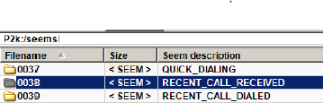 The recent call entries are stored in the SEEM 0038 and SEEM 0039 sections.