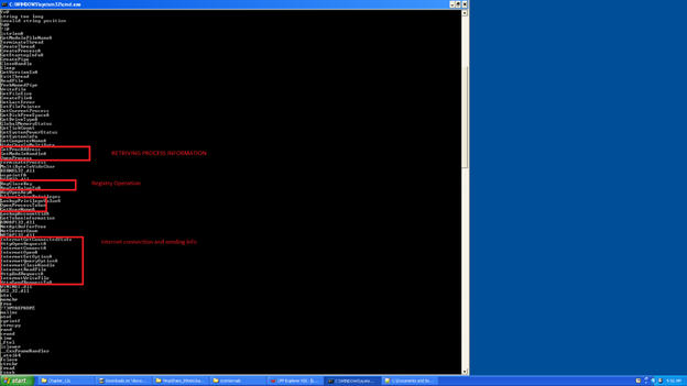 The above list of items indicates the maliciousness of the file. It also enumerates all the process disabling privileges and many more things. Details of reverse engineering of malware is out of scope here.