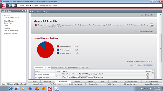So Mandiant's Redline is a great tool for forensic investigation as it is very useful for investigating useful info like Process Injection, Mutex, Semaphore, etc. in the system. Also, this tool classifies the threats as per the MRI score.