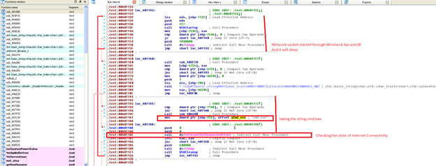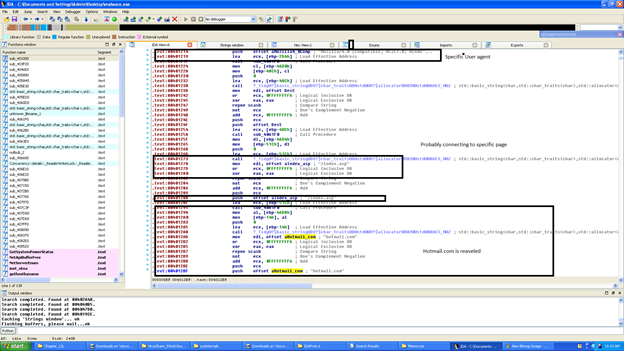 So basically it is connecting to the host using connect API. Also, it has a specific UserAgent Mozilla/4.0 which indicates that it is checking the browser to determine whether it is Mozilla or not. If it is, it will do malicious things. It is also uploading the file, checking the system information, checking memory usage, taking system info. You can check the below images for more. We will confirm above more in Redline as well as with IDA Pro.